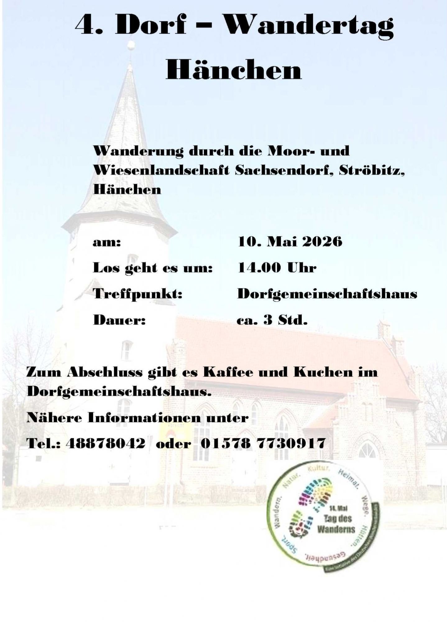 « Alle VeranstaltungenWandertag in Hänchen10. Mai - 14:00« Maitanz in LimbergHochkarätige Billardturniere zum Sportfest in Gulben »+ Google Kalender+ Zu iCalendar hinzufügen Details Datum: 10. Mai Zeit: 14:00Veranstaltungskategorie:Allgemein