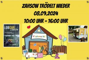 Am Sonntag, den 08.09.2024, in der Zeit von 10 bis 16 Uhr wird im Ortsteil Zahsow wieder getrödelt. Am Dorfgemeinschaftshaus (DGH) sowie auf ausgewählten Höfen kann so mancher Schatz gefunden…