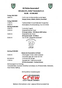 Vom 05. bis 07. August 2022 wird in Kunersdorf der 100. Geburtstag des SV Fichte gefeiert.