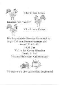 Am Samstag, dem 02. Juli 2022, ist die Musik- und Kunstschule „Johann Theodor Römhild“ des Landkreises Spree Neiße/Wokrejs Sprjewja-Nysa zu Gast in der Dorfkirche in Hänchen. Unter dem Titel „Wenn…